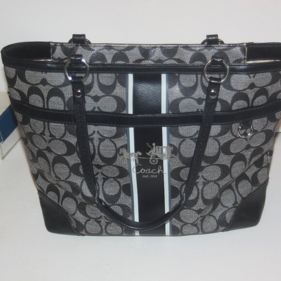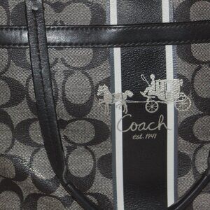 Coach 12358 Signature Coated Heritage Stripe Tote Shopper Shoulder Handbag Logo