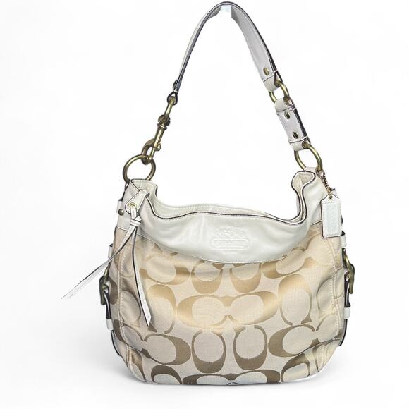 Coach 12674 Zoe Signature Logo Hobo Bag Cream Khaki Jaquard Shoulder Purse Large
