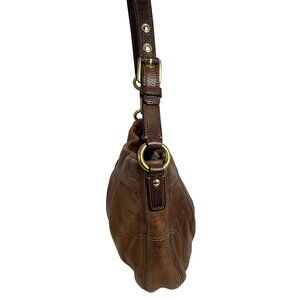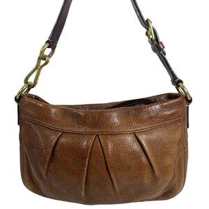 Coach 12917 Hamptons Brown Pleated Leather Hobo Shoulder Bag Zip Top Handbag