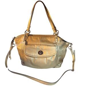 Coach 13173 Leather Crossbody Hand Bag Purse Gold Metallic Leah Collector Classy
