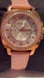 This is a Coach 14503151 Boyfriend 34mm watch with a rose gold-plated case, crystal-set bezel, pink mother-of-pearl dial, and a pink leather strap. Size 6-8