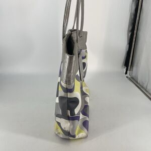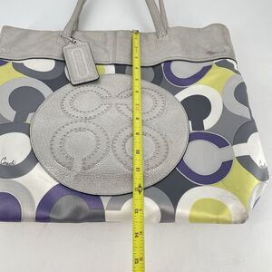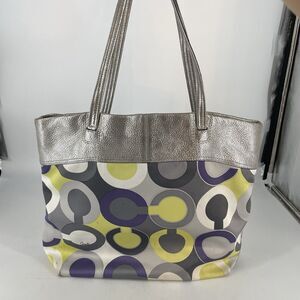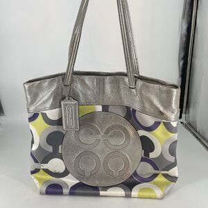 Coach 14970 Julia Op Art Signature Shoulder Tote Bag Silver 16”X13”
