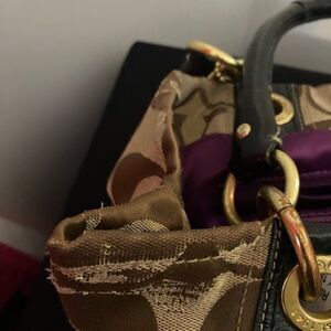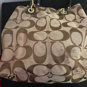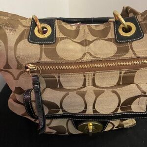 Coach 15689 Hampton Turn lock Brown/Tan Logo bag (Canvas & Leather) ***bag has wear around the edges, no stains. Review pictures******