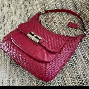 Coach Scarlett Red/Cranberry colored leather woven Large Hobo/Satchel 19314💕💖💕