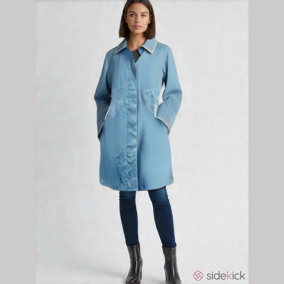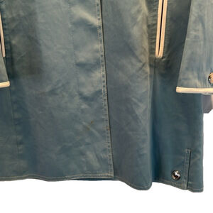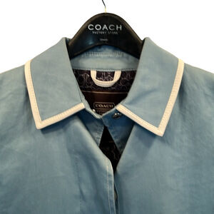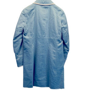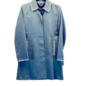 Coach 1941 Rain Coat, Size 4, White leather trim on collar, pockets, and cuffs, Pockets & Hidden Button Closure, Silver Snap Cuffs, beautiful condition with hanger and cover case, SHIPs ALONE NO BUNDLING