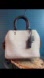 Made with Chalk White Glovetanned Leather, Black Buffalo Leather Handles, Straps, and Trim, it measures approx 12 1/4” wide, 9 3/4” high, 5 1/2” deep, with a 3 1/2” handle drop. The Gunmetal Hardware is stamped with various Coach Logos.