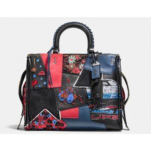 Coach 1941 Rogue 30 Embellished Patchwork Whipstitch Mixed Leather Bag Red Multi