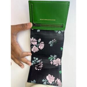 Coach 1941 Small Trifold Wallet Kelly Green With Floral Print Interior