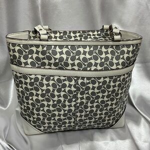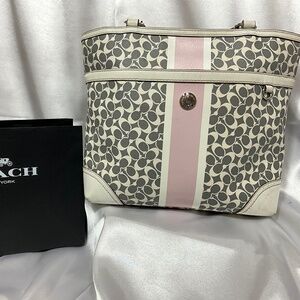 Coach 2 top handle with cream/gray signature print & Pink /cream stripe 30-H1d