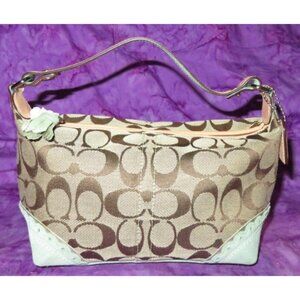 Coach 2000's Y2K Signature Collection Khaki Canvas & Green Suede demi baguette