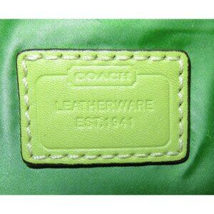 Elegant and timeless, the Coach 2006 Legacy Hampton Soho Demi Bag features green satin with silver hardware. Perfect for adding a touch of sophistication to any outfit, this handbag is a must-have for fashion enthusiasts.