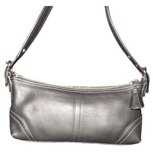 Coach 2007 Black Leather Hampton Demi Baguette Hobo Satchel Bag 8A64