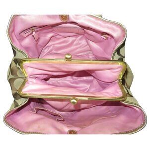 Coach 2008 Cursive Creed Khaki Signature C Kisslock Dual Strap Carryall Satchel