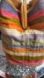 Design: The bag is characterized by its vibrant multicolor striped linen or canvas fabric, often in hues like purple, pink, green, and orange, paired with natural vachetta leather trim and double handles.