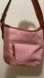 This Coach convertible crossbody bag combines a chic pink and brown color palette with a textured finish for a stylish look. Its adjustable leather strap ensures comfort, making it ideal for everyday use as a crossbody or shoulder bag. The bag's simple and practical design offers both style and functionality.