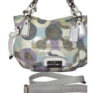 Coach 2010 Kristin Op Art Sequined Canvas & leather Crossbody Satchel Hobo