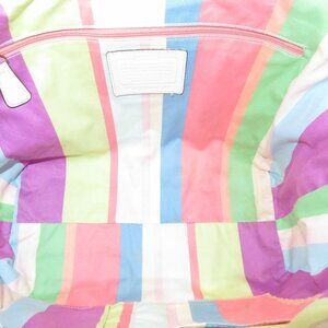 Beautiful Coach Hamptons Straw Shoulder Bag with white Leather trim and legacy satin striped lining.