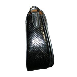 Super chic and adorable Coach Morgan saddle bag is crafted from black pebbled leather and accented with snakeskin trim and has a buckle flap. She is brand new, never used