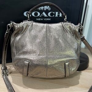 Coach 21251 Madison Annabelle Metallic Pewter Leather Satchel Crossbody Bag
