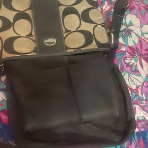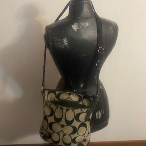 Coach 21905 Signature Black Stripe Crossbody Bag (Canvas) **cracks in patent leather. Wear on edges see pictures***