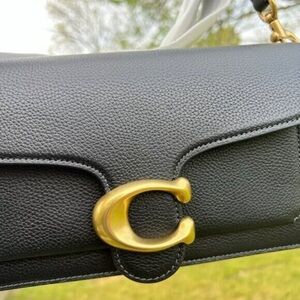 Gently used Coach Tabby 26 black pebble leather with pewter hardware. Comes with dust bag. Top handle and shoulder strap are detachable. Measures 10.25" L x 6" H x 3.25" D