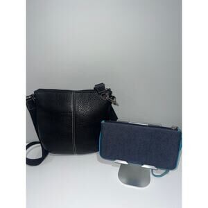 Coach 2-Piece Set – Black Pebbled Leather Crossbody + Blue Canvas Wristlet