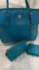 Coach 3 SET Teal Tote shoulder bag and wallet and cosmetic bag EUC