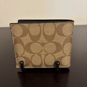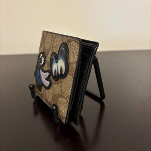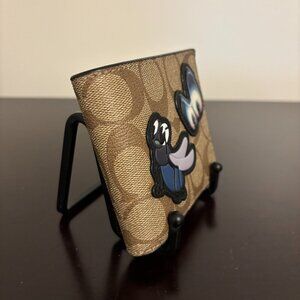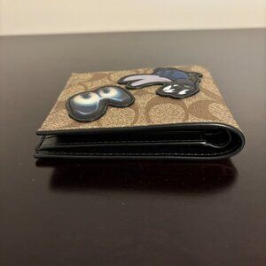 Coach 3 in 1 Signature Brown Canvas Black Leather Disney Patch Bifold Wallet