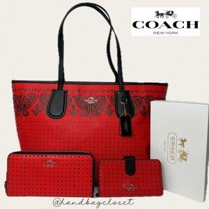 Coach 36357 Red Bandana Polka Dot Black Taxi Tote Bag and Wallets Americana Set
