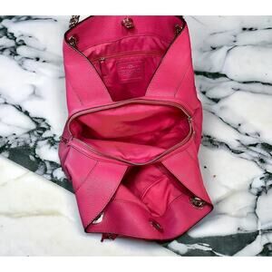 This Coach 36855 Turnlock Edie Bag and Matching Wallet from 2015 in bright pink is the perfect Spring and Summer bag! Featuring soft, pebbled leather on the bag and smooth leather on the wallet, this set is both stylish and functional with more than enough storage for all your needs. If you love and appreciate iconic Coach design and quality, this is a must have for your collection!