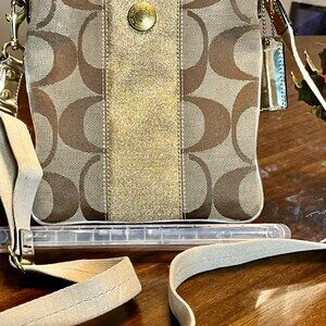 Coach #42246 Signature Jacquard North South Gold Lurex Swingpack Crossbody Bag
