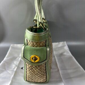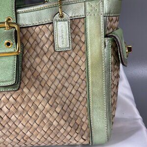 Coach # 4419 Limited Edition Natural Straws Seafoam Suede Leather Trim Buckle Closure Tote Bag