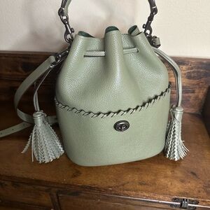 Coach $445 MSRP Lora Khaki Leather Bucket Bag