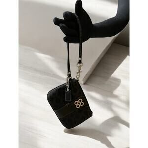 This Coach 47497 Madison Op Art Signature Wristlet is such a cute accessory! Featuring Signature Jacquard in the OP Art motif in black/dark brown (black background with dark brown C’s) with leather trim, this style would look great with a variety of Coach bags and styles. If you love and appreciate Coach style and quality, you need this adorable wristlet in your collection!