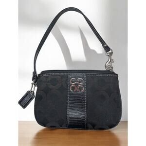 This Coach 47497 Madison Op Art Signature Wristlet is such a cute accessory! Featuring Signature Jacquard in the OP Art motif in black/dark brown (black background with dark brown C’s) with leather trim, this style would look great with a variety of Coach bags and styles. If you love and appreciate Coach style and quality, you need this adorable wristlet in your collection!