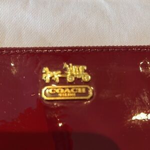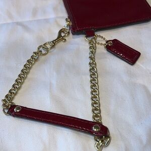 This is a beautiful Coach 47941 Madison Dark Red Wine Patent Leather Chain Wristlet/Clutch. Goldstone hardware. Fob. Fully lined with two slip in pockets. Excellent condition. No issues. Worn once.