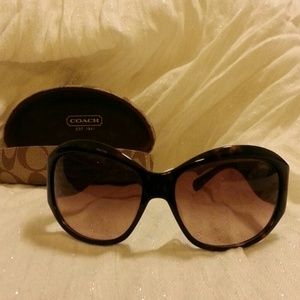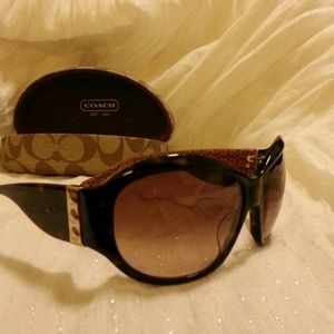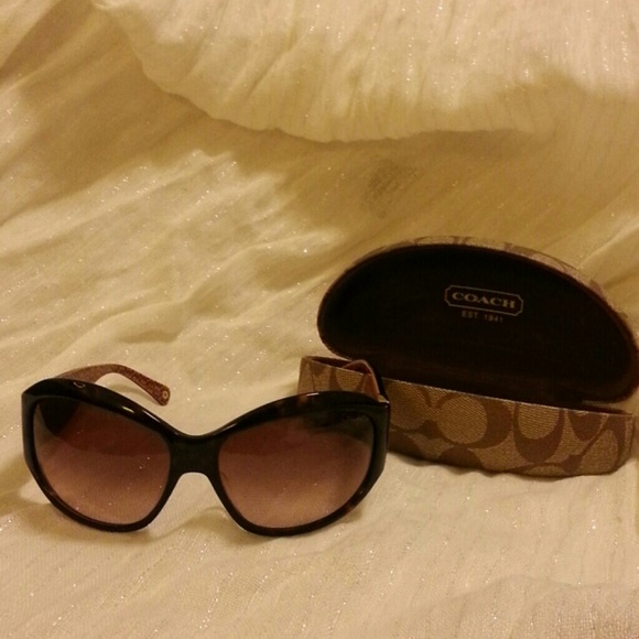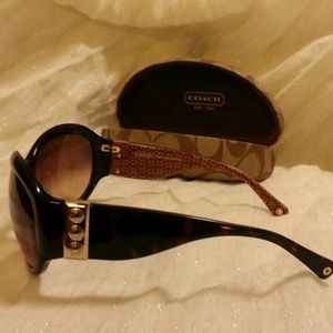 Designer authentic Coach sunglasses. Design rich dark brown mixed with slight animal print rim. Case included