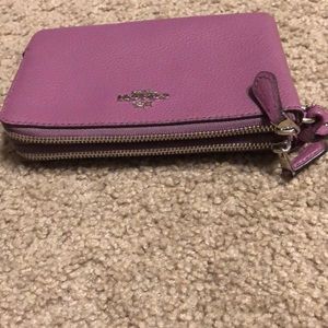 Cute pebble double zip coach wallet with 2 card holders inside. Wrist band, smoke and pet free home. No defects.