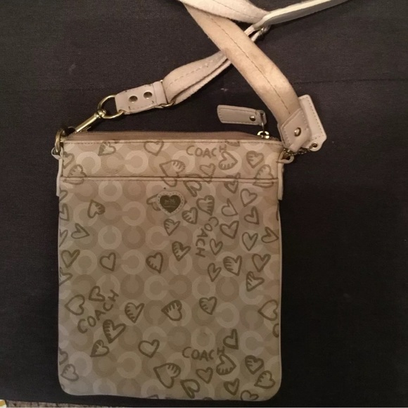 Barely used I loved hearts at the time, and this was the only reason why I purchased; because it was a cute bag with multiple hearts reminder☝🏽 all my purses are as is they will need a tlc inside and outside... they were all uses a handful of times thanks feel free to make offers 😌