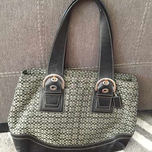 Black and white Coach shoulder bag. Price can vary.