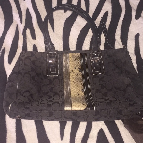 Great every day bag or even for travel. Can hold a lot in this bag. I don't have the adjustable shoulder strap , but it does come with the dust bags. There are no staining or tears. I pictured the only flaw of this bag. It's black with a yellow/tan/gold snake print strip down the center. Condition 1-10 I would say is an 8. Please make offers