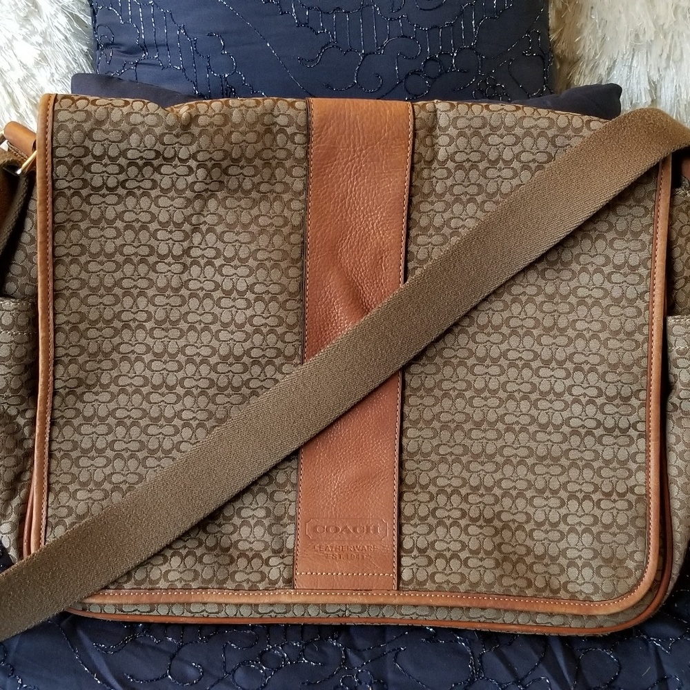 COACH F 77004 MODEL INFORMATION: Mini Signature C Khaki canvas with light tan / vachetta colored leather trim and details. Highly versatile messenger ...