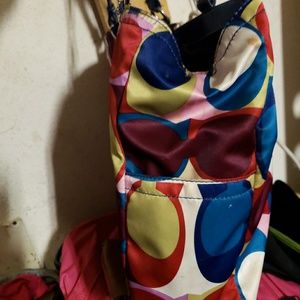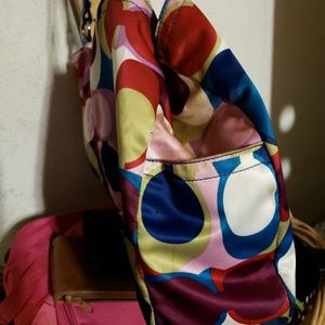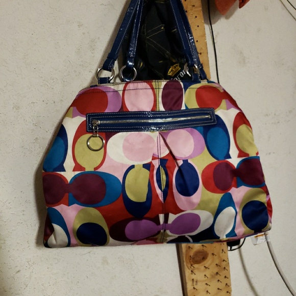 Xl multi colored coach bag this bag is big bold am b.d beautiful could use a spot cleaning maybe!no real signs of wear