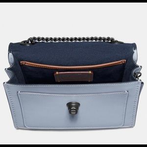 Structured and lightweight, the Parker is a versatile bag that combines uptown elegance with downtown ease. Made mini for nights out, the 18 is crafted in refined leather embellished with our Tea Rose appliqué and industrial-inspired metal hardware for a touch of rebel attitude. It secures with a Signature turnlock.