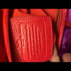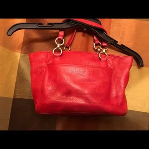 Red coach purse medium size. There is about a 2 inch area on the handle where is the imperfection. You cannot see it whatsoever when you’re holding it. Price reflects imperfection