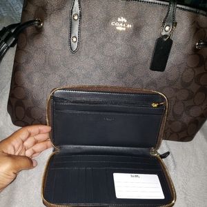 Brand new brown leather coach bag with matching wallet