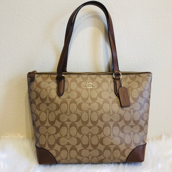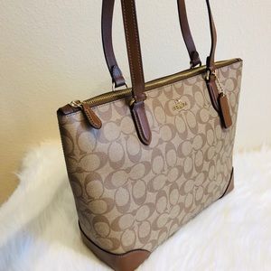 ZIP TOP TOTE IN SIGNATURE LEATHER TOTE