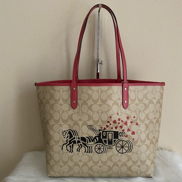Reversible City Tote In Signature Canvas With Horse And Carriage Hearts Motif (91011)