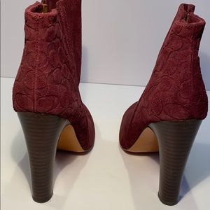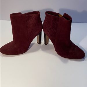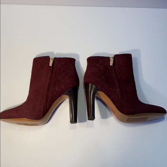 NEW never worn Coach women’s Hanni Suede Leather Bootie,..beautiful color GARNET,..Gold zipper with Coach “C” logo stamped in the suede back heal area. No box