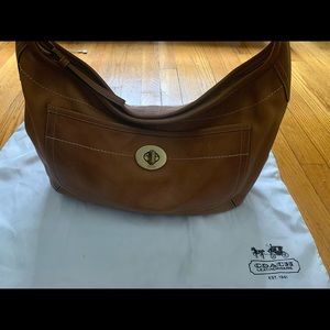 70% in good condition the great thing about owning a coach bag it can be taken to any coach store to get refurbished for free!